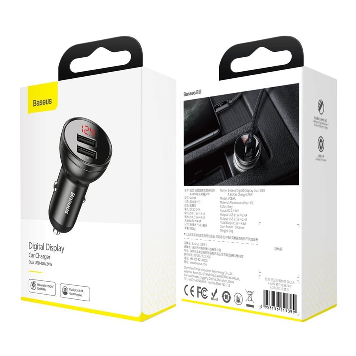 Baseus Digital Display Dual USB 4.8 A Car Charger 24W - автомобильное зарядное устройство, подключаемое к бортовой сети авто через разъем прикуривателя, с двумя портами USB. Главное предназначение этого миниатюрного гаджета – быстрая и эффективная подзарядка аккумуляторов различных портативных устройств в салоне автомобиля. Это просто незаменимый аксессуар для тех, кто большую часть своего времени проводит за рулем. Зарядка идеально подходит для всех моделей смартфонов, планшетов, плееров и прочих устройств, создаваемых всемирно известными торговыми марками.