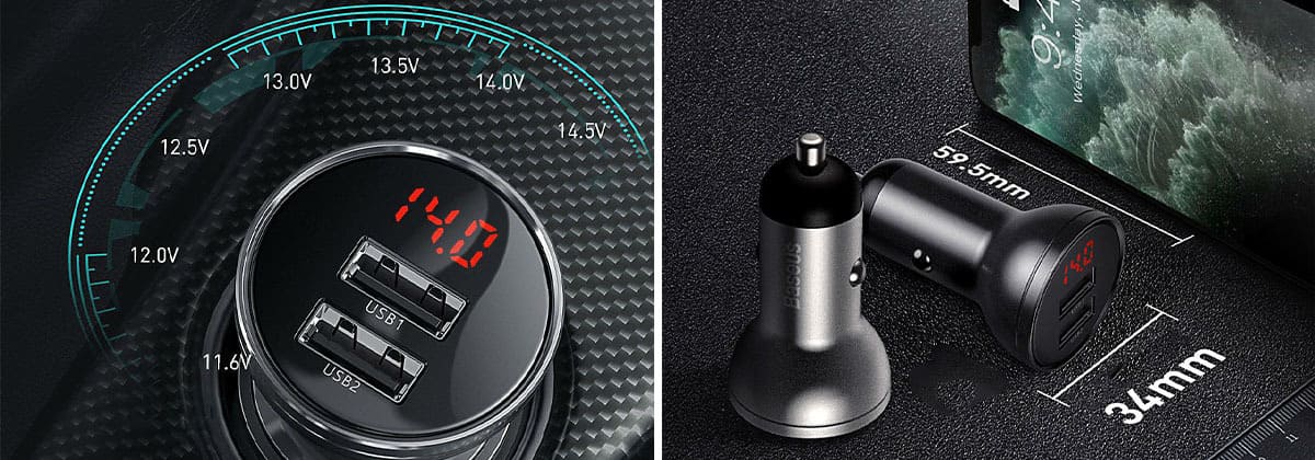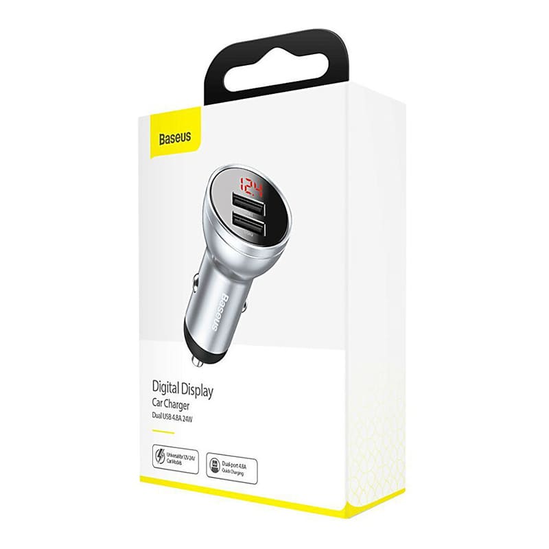 Baseus Digital Display Dual USB 4.8 A Car Charger 24W - автомобильное зарядное устройство, подключаемое к бортовой сети авто через разъем прикуривателя, с двумя портами USB. Главное предназначение этого миниатюрного гаджета – быстрая и эффективная подзарядка аккумуляторов различных портативных устройств в салоне автомобиля. Это просто незаменимый аксессуар для тех, кто большую часть своего времени проводит за рулем. Зарядка идеально подходит для всех моделей смартфонов, планшетов, плееров и прочих устройств, создаваемых всемирно известными торговыми марками.