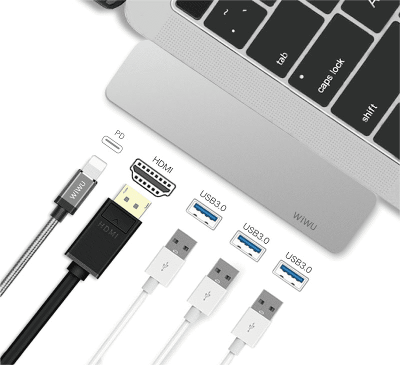 Адаптер WIWU T6 Pro оснащен 3 портами USB 3.0, которые поддерживают передачу данных со скоростью до 5 Гбит/с. Разъем HDMI обеспечивает вывод изображения в качестве 4К. Разъем TypeC с поддержкой технологии Power Delivery для питания и подзарядки ноутбука, к которому подключен концентратор. Прочный корпус из алюминиевого сплава в стиле Macbook.