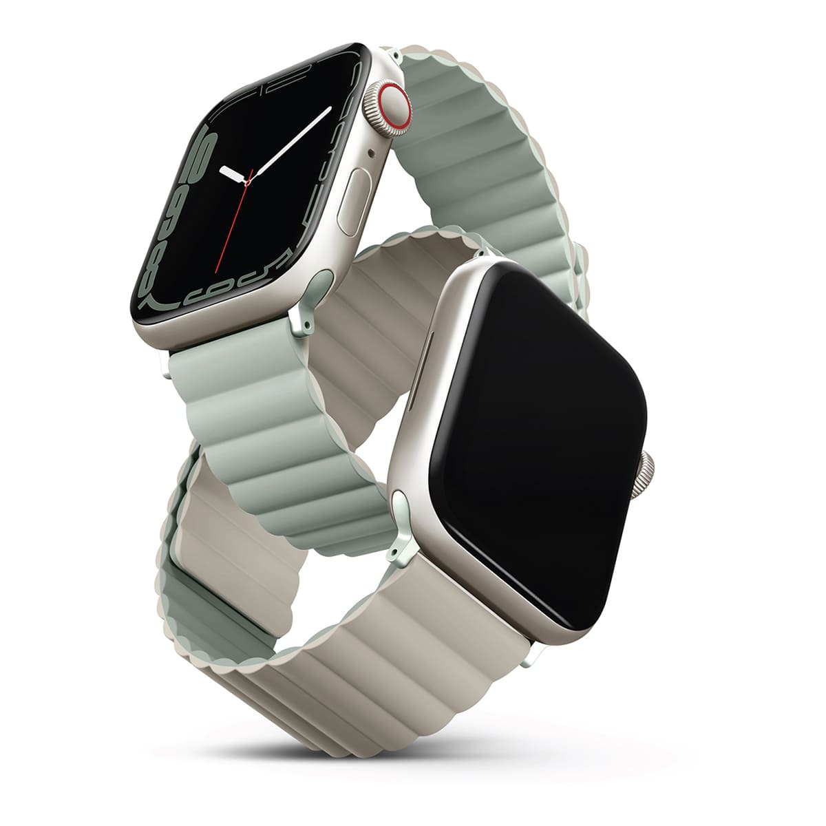 Двусторонний силиконовый ремешок для Apple Watch с магнитной застежкой приятен на ощупь, не вызывает раздражения во время эксплуатации, а также не боится загрязнений и влаги. Возможность регулировки длины обеспечивает точное соответствие размерам руки и надежно фиксирует устройство на запястье, позволяя не беспокоиться об утере даже на занятиях спортом.
