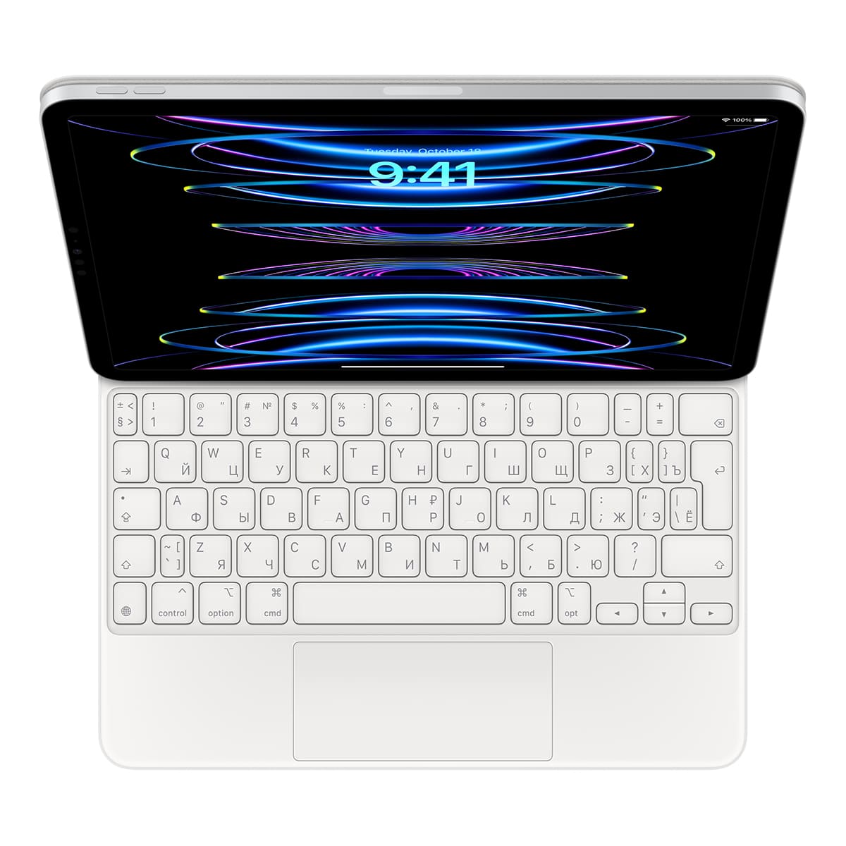 Клавиатура Magic Keyboard станет дополнением к iPad Pro 11 дюймов и iPad Air. Встроенный трекпад открывает новые возможности для работы с iPadOS. Порт USB‑C позволяет заряжать iPad. А в сложенном виде Magic Keyboard защищает устройство с обеих сторон. Эта клавиатура особой конструкции примагничивается к iPad Pro или iPad Air и удерживает его на весу. При этом можно плавно менять угол наклона, чтобы подобрать идеальное положение.