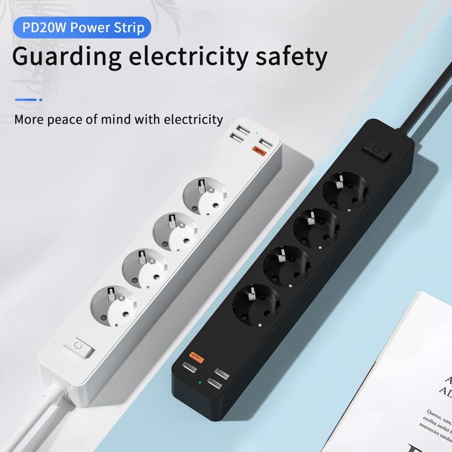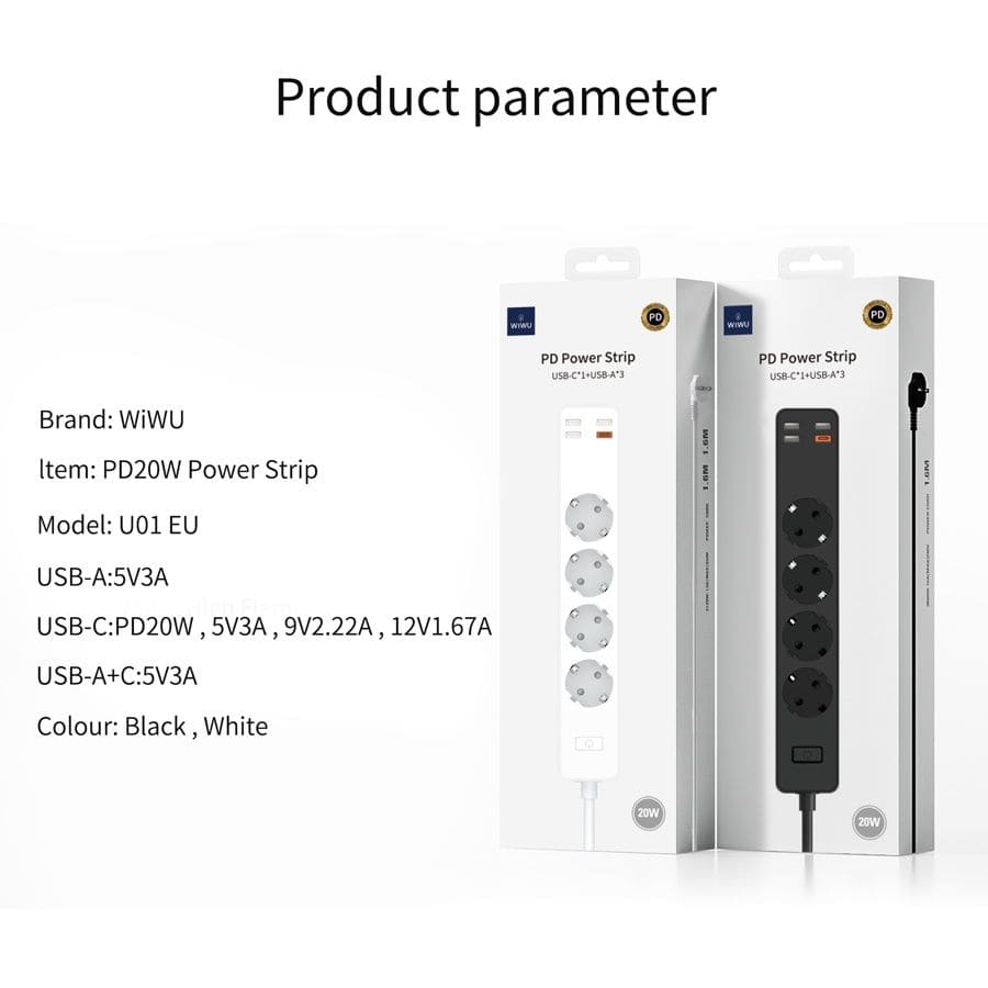 WIWU PD20W Power Strip – это универсальное устройство, позволяющее подключать бытовую технику к сети, а также заряжать мобильные гаджеты от четырех портов USB.
